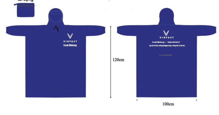 Alt="Áo mưa quảng cáo cho doanh nghiệp mùa mưa của Vinfast"